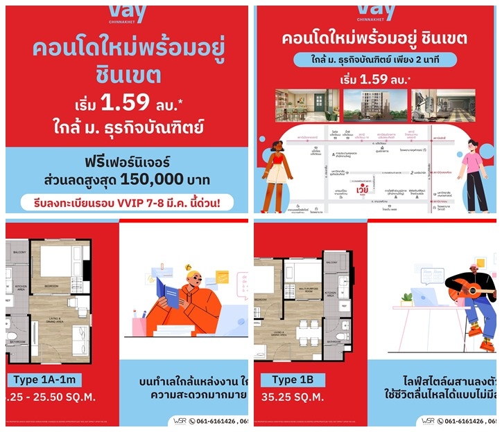 #VayChinnakhet พบกับ “เวย์ ชินเขต” คอนโดใหม่แต่งครบ พร้อมอยู่ เริ่มเพียง 1.59 ล้าน 2 นาที* ถึง ม.ธุรกิจบัณฑิตย์ เปิดชมตึกจริงและจองครั้งแรกพร้อมกัน 7 - 8 มี.ค. นี้ ทักรับส่วนลดสูงสุด 150,000 บาท**